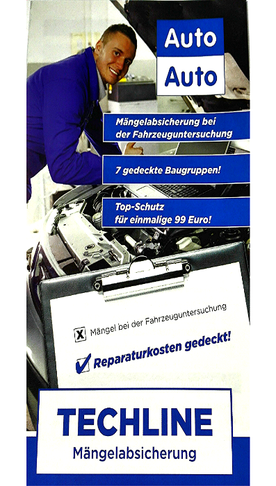 Mit TECHLINE sichern Sie sich für den Fall einer Beanstandung bei der nächsten technischen Hauptuntersuchung (TÜV) ab. Die dort beanstandeten Mängel, bzw. deren Behebung sind durch die TECHLINE-Schadensabsicherung gedeckt.